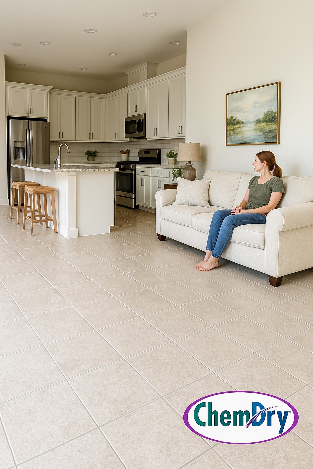 Now, Sarah schedules routine cleanings with Chem-Dry to keep her tile floors spotless and her home inviting.